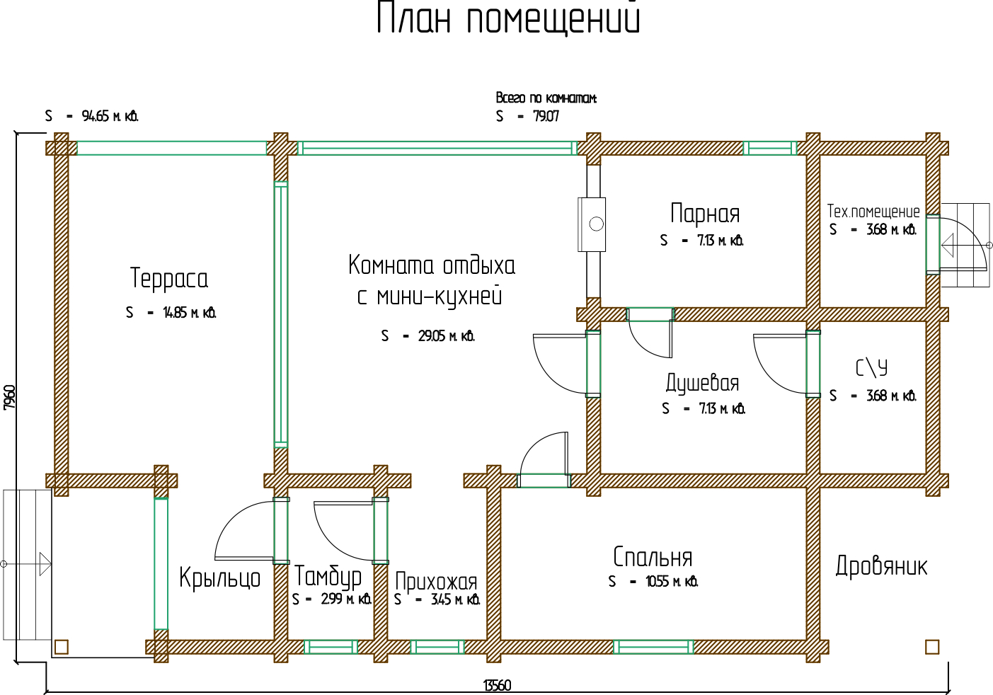 Площадь 1 этажа: 79 м