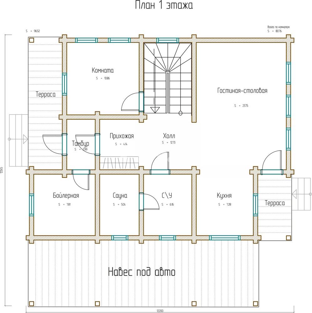 Площадь 1 этажа: 70 м